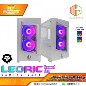 CASING CUBE GAMING LEORIC Glass White - Mid Tower mATX Case Tempered Glass (Free 2x RGB Fan)