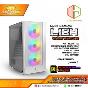 CASING CUBE GAMING LICH White - Mid Tower ATX Case Tempered Glass (Free 3x RGB Fan)