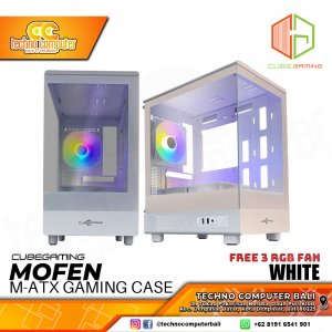 CASING CUBE GAMING MOFEN White - Mid Tower mATX Case Tempered Glass (Free 3x RGB Fan)