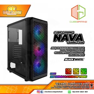 CASING CUBE GAMING NAVA Black - Mid Tower ATX Case Tempered Glass (Free 3x RGB Fan)