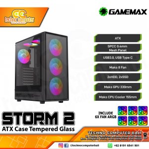 CASING GAMEMAX STORM 2 Black - Mid Tower ATX Case Tempered Glass (Free 6x ARGB Fan)