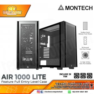 CASING MONTECH AIR 1000 LITE Black - Mid Tower ATX Case Tempered Glass (Free 3x Fan)