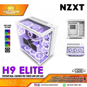 CASING NZXT H9 Elite Edition White - Dual-Chamber Mid Tower ATX Case Tempered Glass (Free 4x Fan)