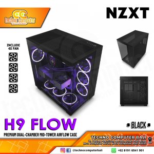 CASING NZXT H9 FLOW Edition Black - Dual-Chamber Mid Tower ATX Case Tempered Glass (Free 4x Fan)