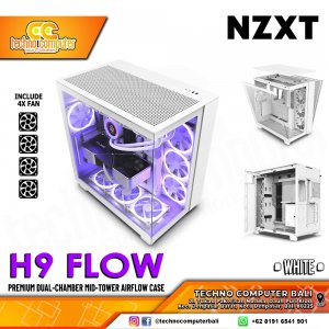 CASING NZXT H9 FLOW Edition White - Dual-Chamber Mid Tower ATX Case Tempered Glass (Free 4x Fan)