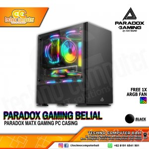 CASING PARADOX GAMING BELIAL Black - Mid Tower mATX Case Tempered Glass (Free 1x RGB Fan)