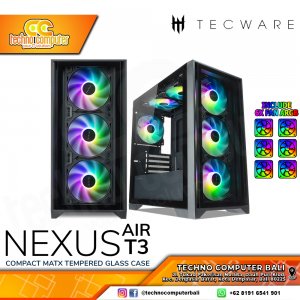 Tecware Nexus Air T3 Black Free 6Fan ARGB Casing Komputer PC Computer 6 Kipas A-RGB Hitam M-ATX MATX Micro-ATX Mini-ITX Tower Tempered Glass Clean Seamless Display Gaming Case