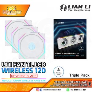FAN CASING LIAN LI UNI FAN TL LCD 120 REVERSE BLADE Wireless White - 120mm Triple Pack ARGB Fan