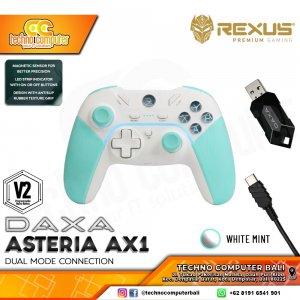 Gamepad Daxa Asteria AX1 merupakan gamepad dual koneksi yang dapat diaplikasikan dengan perangkat Android, PC, dan Playstation 3. Dengan menggunakan sistem koneksi kabel USB dan nirkabel berbasis frekuensi 2,4 GHz, gamepad ini akan membuat pengendalian permainan tanpa batas. Baterai yang disematkan juga awet, 600mAH, untuk pemakaian kurang lebih 4-10 jam. Dengan desain futuristik, ukuran ideal, dan rubber grip anti slip, tentunya Gamepad Daxa Asteria AX1 akan memberikan sensasi bermain yang sangat nyaman. Tersedia 2 pilihan warna yang menarik, Black-Grey dan White-Mint.