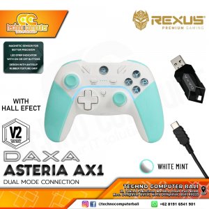 Gamepad Daxa Asteria AX1 merupakan gamepad dual koneksi yang dapat diaplikasikan dengan perangkat Android, PC, dan Playstation 3. Dengan menggunakan sistem koneksi kabel USB dan nirkabel berbasis frekuensi 2,4 GHz, gamepad ini akan membuat pengendalian permainan tanpa batas. Baterai yang disematkan juga awet, 600mAH, untuk pemakaian kurang lebih 4-10 jam. Dengan desain futuristik, ukuran ideal, dan rubber grip anti slip, tentunya Gamepad Daxa Asteria AX1 akan memberikan sensasi bermain yang sangat nyaman. Tersedia 2 pilihan warna yang menarik, Black-Grey dan White-Mint.