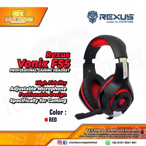 Headset Rexus Vonix F55 di desain untuk para penggemar game-game komputer 3D FPS. Headset yang terbuat dari bahan pilihan yang sangat nyaman dikenakan dalam waktu yang lama terutama di depan komputer berjam-jam di depan komputer saat bermain game-game kesayangan. Dengan tingkat sensitifitas mikrofonnya yang lebih baik dan bekerja optimal untuk digunakan berbicara lewat game online lewat fasilitas Voice IP (VoIP) serta ukuran kabel yang panjang sehingga sangat nyaman untuk digunakan.