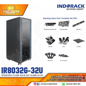 INDORACK IR8032G-32U - Standing Close Rack 32U Depth 800mm Glass Door 19Inch