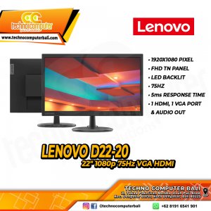 LENOVO D22-20 LED Monitor - 22 inch, FHD (1920 x 1080), TN, 75Hz, HDMI, VGA