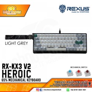 REXUS HEROIC KX3 V2 65% Light Grey - Mechanical Hotswap Blue Switch - Gaming Keyboard