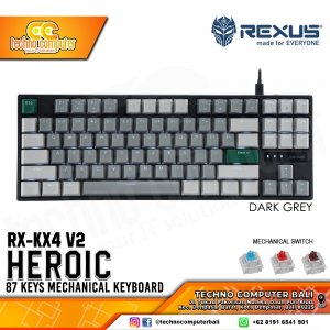 Keyboard Rexus Heroic KX4 menyajikan tampilan yang elegan dengan kombinasi warna hitam dan abu-abu pada keycapsnya serta keycaps aksen merah di tombol Esc dan Enter memberikan kesan yang menawan. Tentunya dengan harga yang tetap worth it di kelasnya.