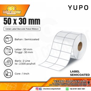 STIKER LABEL THERMAL BARCODE YUPO 50x30mm, 2 Line, 2500pcs