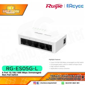 SWITCH HUB RUIJIE/REYEE RG-ES05G-L 5-Port Gigabit Unmanaged Switch Plastic Case