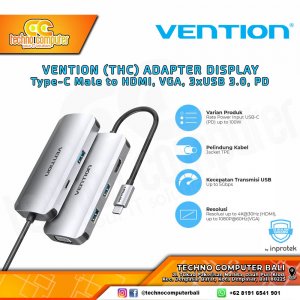 VENTION CONVERTER ADAPTER DISPLAY - Type-C to HDMI, VGA, 3xUSB 3.0, PD - THC 0.15M